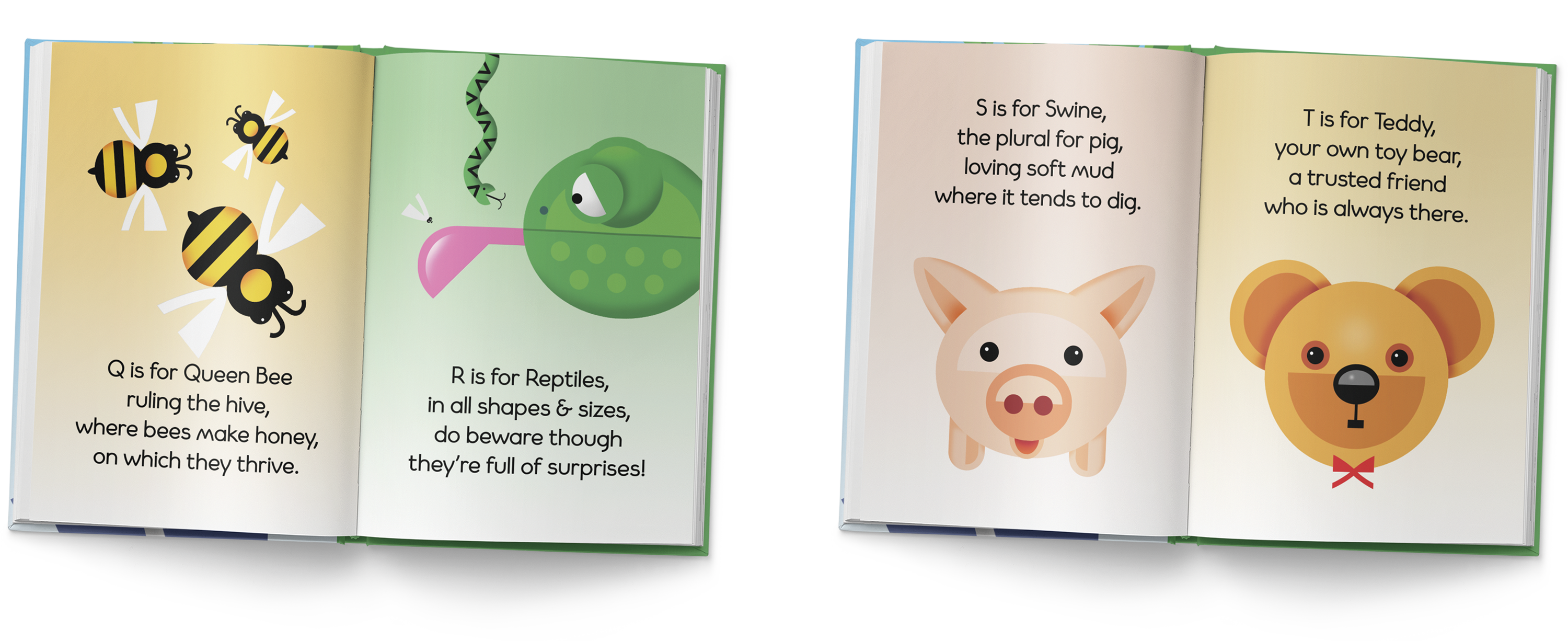 A 32-page Animal Verse Book employing the complete alphabet, with each page portraying a creature alongside complimentary verse.