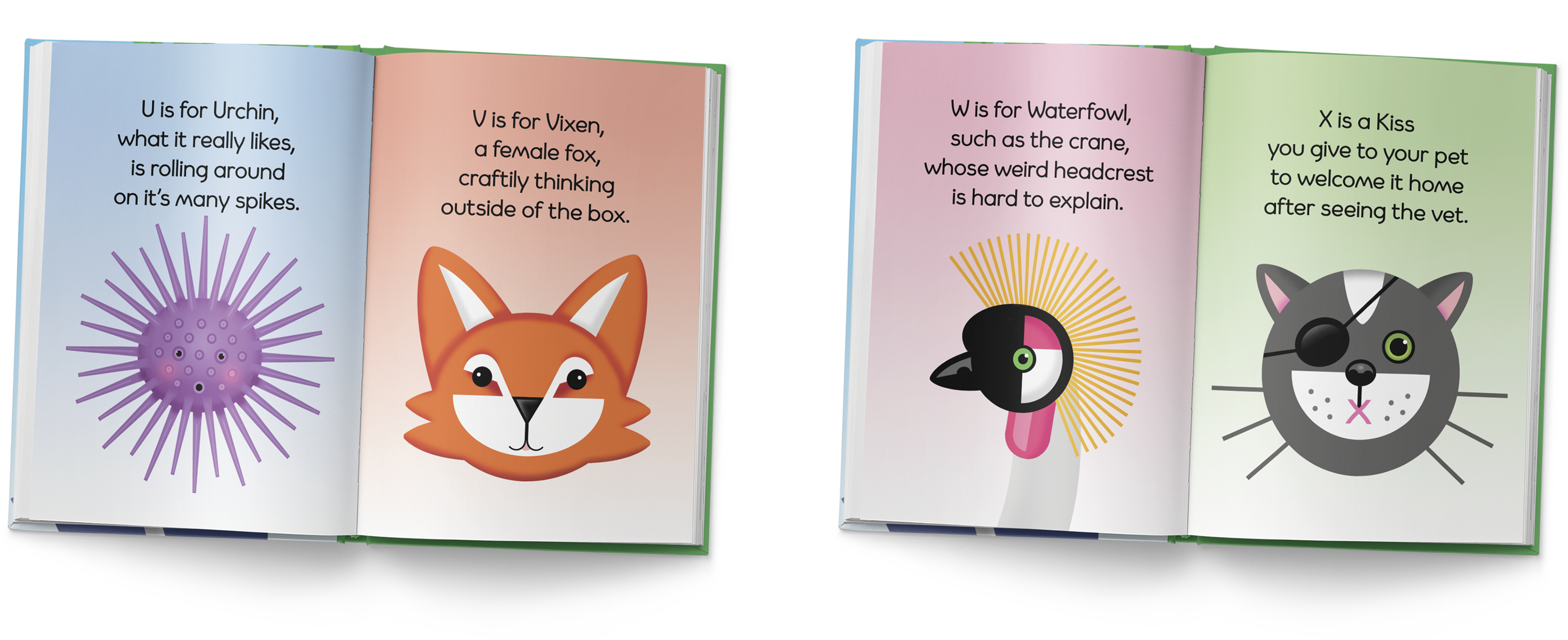 A 32-page Animal Verse Book employing the complete alphabet, with each page portraying a creature alongside complimentary verse.
